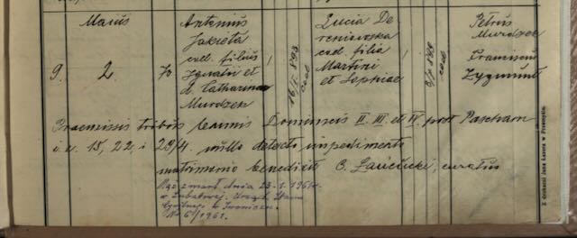 Their mother died in June of 1894, the same year Agnieszka was born. Trying to raise three young children, Ignacy, at only 39, quickly remarried. On October 11, 1894, he married Victoria Borek. There is no record of any children from that marriage, but I continue to scour records.