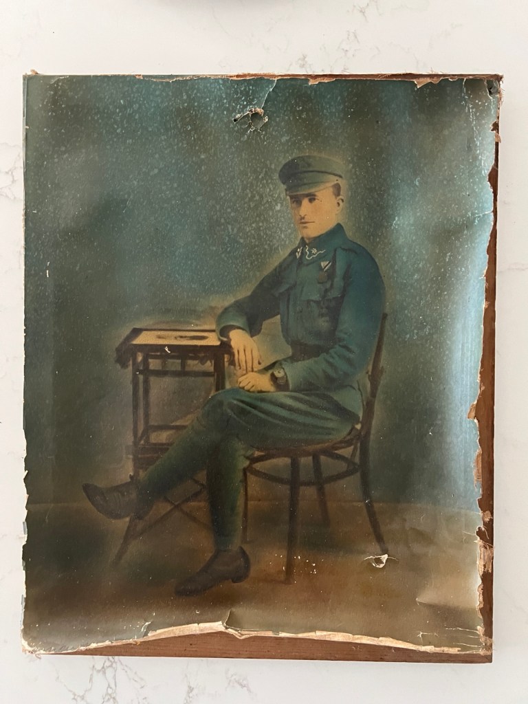 Antoni served in World War 1 with the Polish Legion based on this picture that has been in the family for many years. I shared the picture with a few Polish Heritage/Genealogy groups on Facebook and was told that it is a uniform for the Polish Legion based on the “maciejówka” cap and the zig-zag design on his collar. The one silver star on the collar is for the rank of lance corporal. The Polish Legion fought alongside Austria-Hungary troops against Russia. The cap was part of traditional folk attire in many regions of Poland and became part of the Polish Legion uniform. After Poland won its independence in 1918, the cap was thought to look too much like the German WW1 garrison hat, so the Polish army moved to a peaked 4 cornered cap.