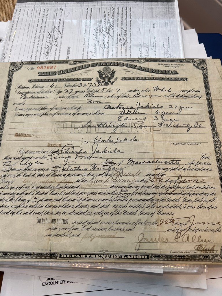 Charles had been a writer for a Polish newspaper in Chicago before moving to Southington. No, Charles’s destination from Poland was Southington but there’s no record he settled there before heading to Palmer, Massachusetts to work in the textile mill where he met Antonia. Now, he might not have been a newspaper writer but according to Auntie Helen, on a regular basis he would write to the government asking for his pension from WWI to be increased.