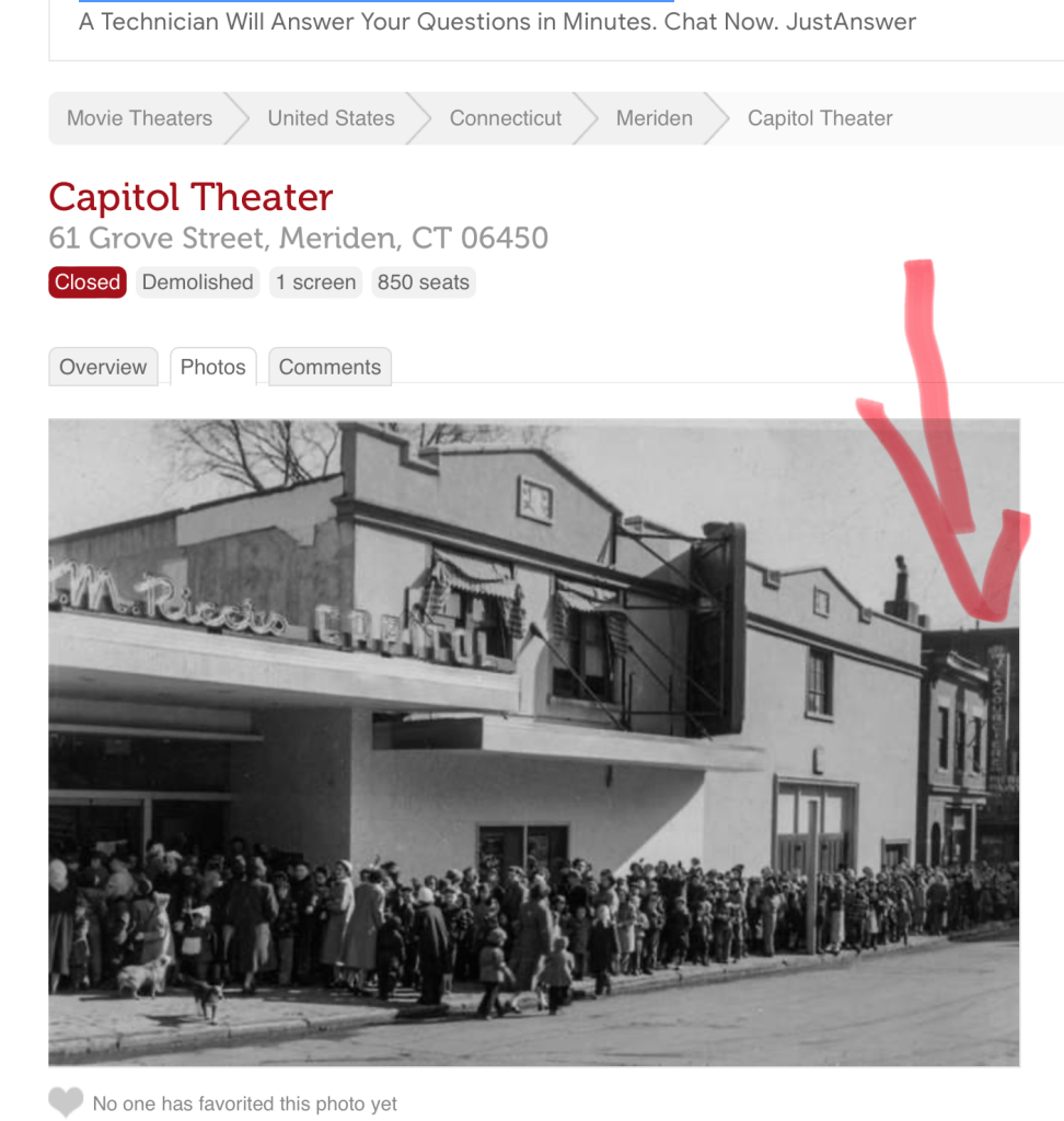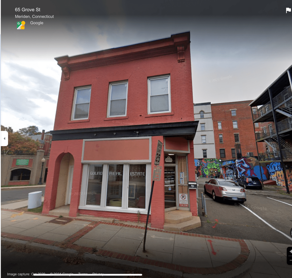 There were 2 stores, one in Wallingford on Center Street at the current location of Cafe Luca and the Meriden store. The building the Meriden store was housed in was at 55 Grove Street in Meriden. It was an old brick building with very high decorative ceilings, a loft where the accounting was done, and an attic. Customers came in off the street through the front door and the back door – this old wood door with a bunch of locks – brought us in from the small parking lot in back. On the right side was the back of Firestone Tire which faced West Main Street and on the left side was the Capitol Theater. The theater was torn down for a parking garage in 1985 approximately.
