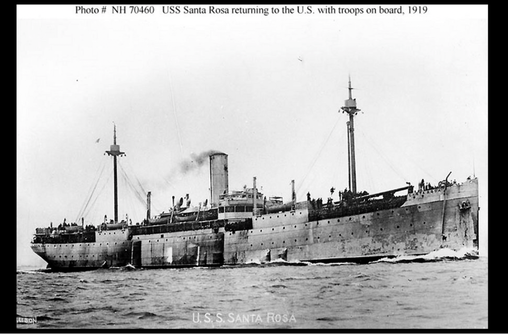 He arrived back in Boston Massachusetts on April 26, 1919 aboard the SS Santa Rosa from Pauillac France.