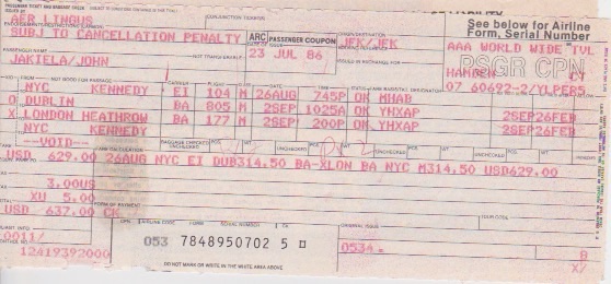 My parents, both in their early 60s, had never been on a plane before! They applied and received their passports, applied for a credit card, received their foreign country drivers license, and they were ready to go on August 26, 1986.