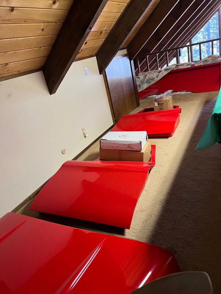In the years after racing and before he died in October of 2021, Paul was in the process of restoring a 1957 Chevrolet truck. The parts had all been painted and were stored around the house and the frame and engine were in the garage. Unfortunately, it didn’t happen and we were fortunate to find someone to purchase it at the beginning of our week of cleaning out his house (with plans to bring it all home)! How lucky we were to find that person!