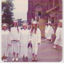 Janice, at 18 months older, always had 2-3 inches on us. Just enough to not have to hem every pair of pants she got! Gail and I had a 4” growth spurt in 6th grade and except for a few more inches between then and 18, we were done at 4’11”. In standing in a line by height, we’re forever in the front and the shortest of all the relatives.