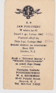 In the early 2000s, when I received ancestry material from my cousin Judy, there was a funeral card for my great-uncle John Posluszny.