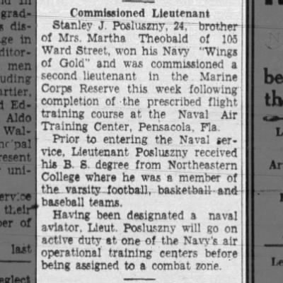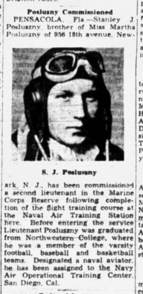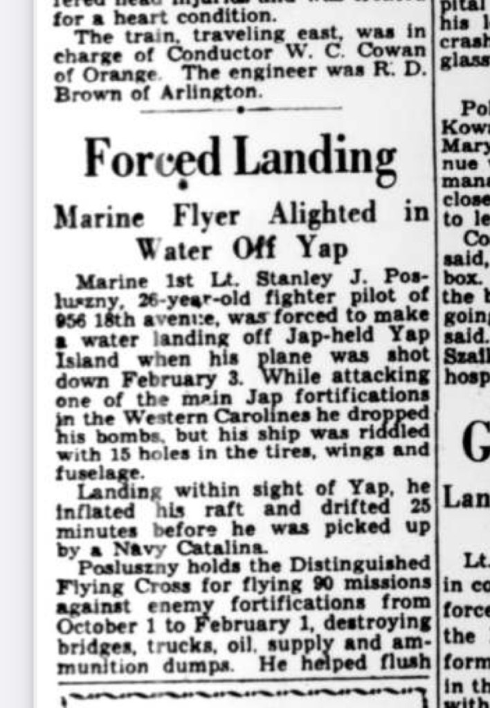 In 1945 Stanley was flying in the Pacific Theater and this event was recorded in the Newark Evening News.
