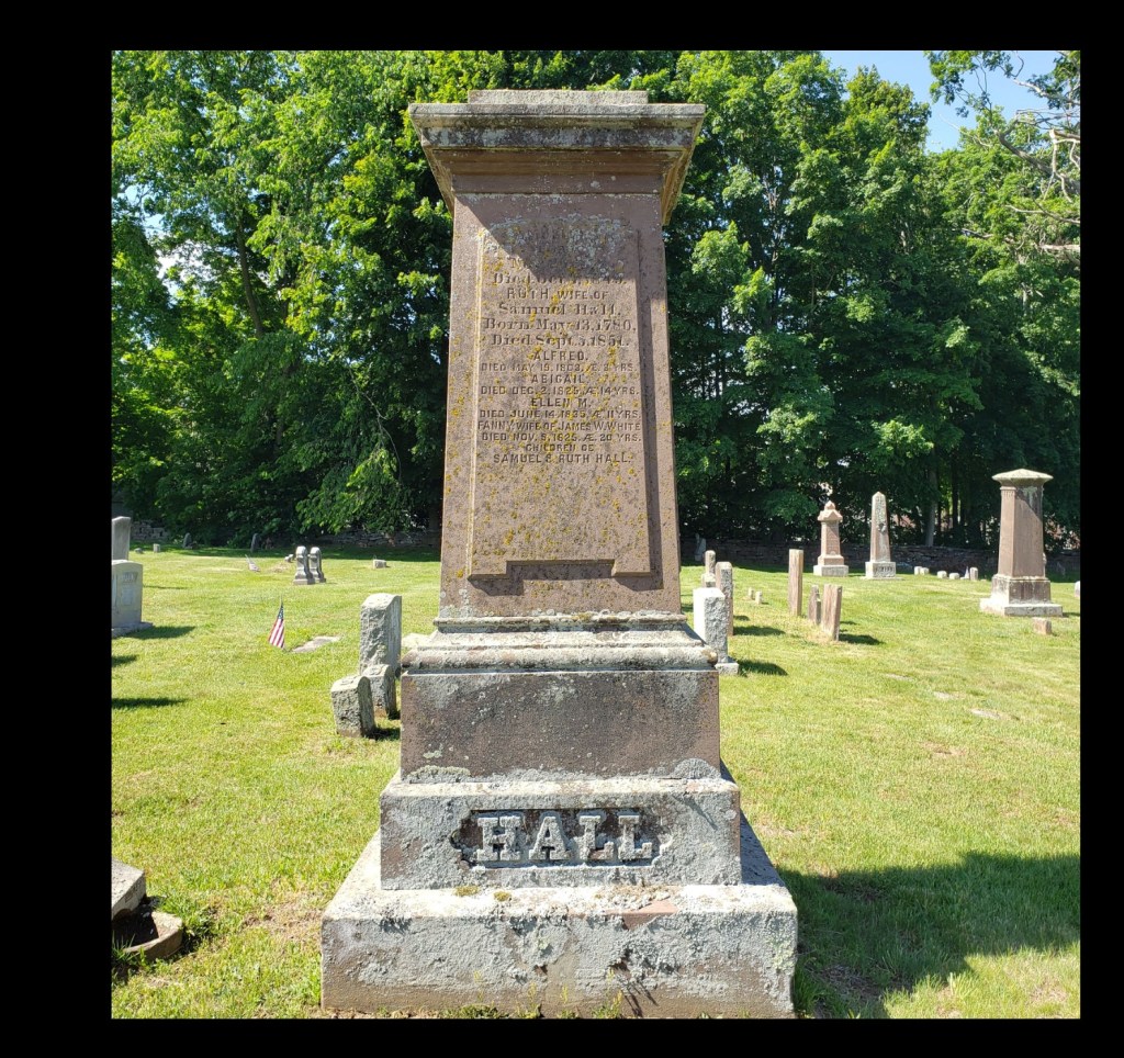 Fanny was born in Chatham, Connecticut on April 27, 1802 to Samuel Hall and Ruth Bates Hall. A record says “Middletown Upper Houses:577”. Fanny was one of 10 children born to Samuel and Ruth.