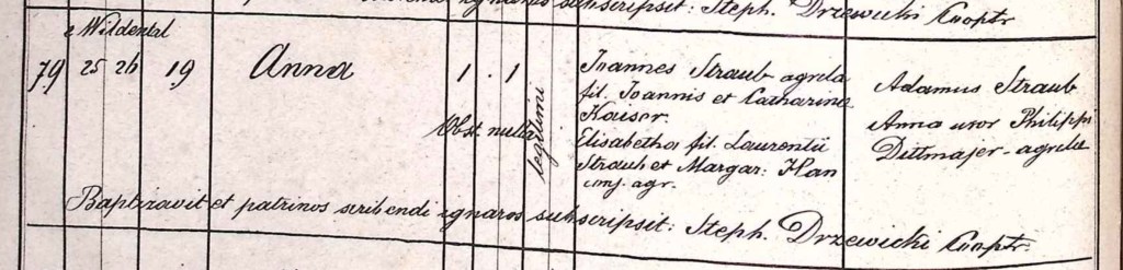 Anna’s birth record – December 25 birth, 26th baptism, house number 19