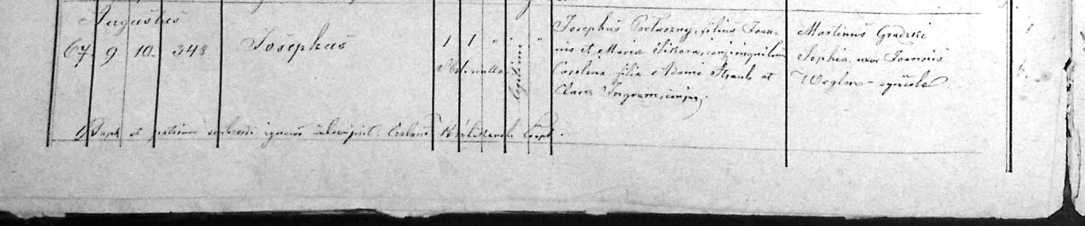 Joseph’s birth recordAugust 9 birth, 10th baptism, house number 248