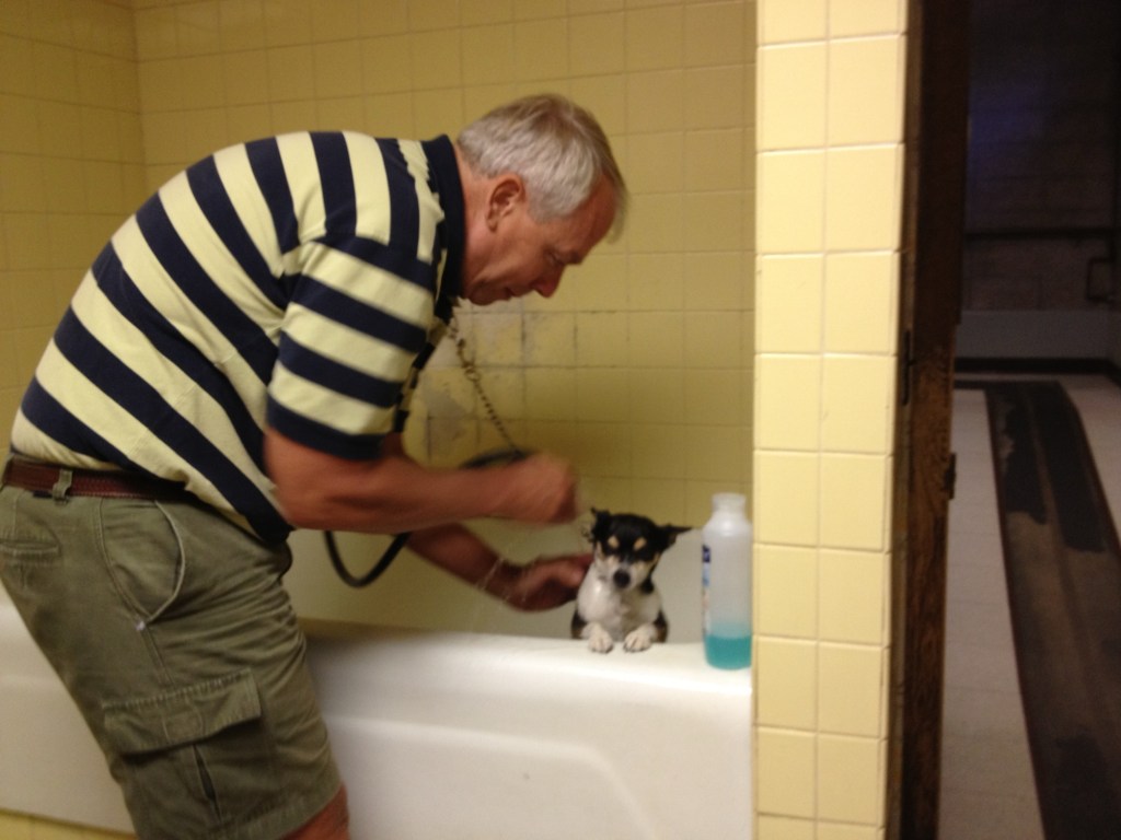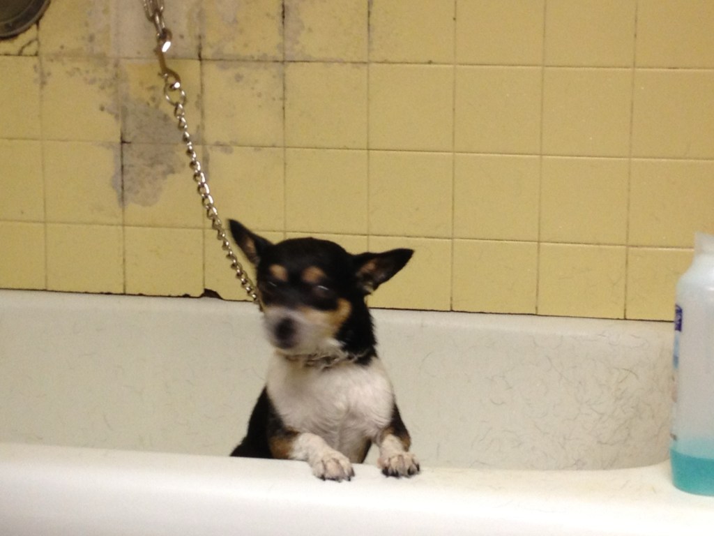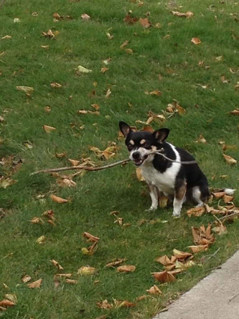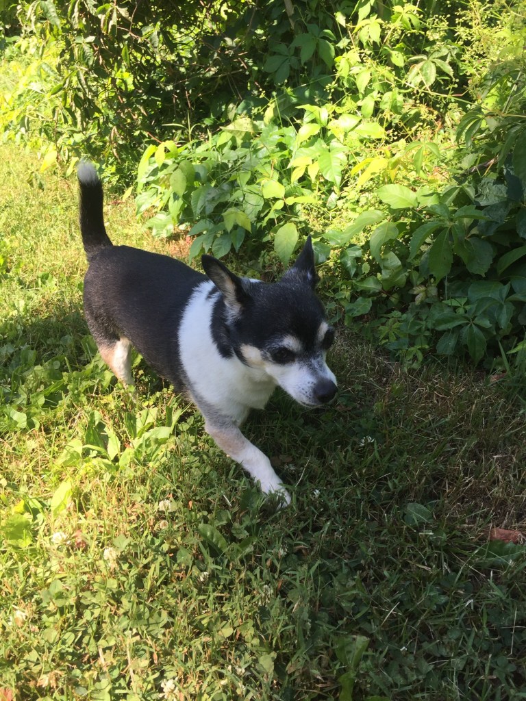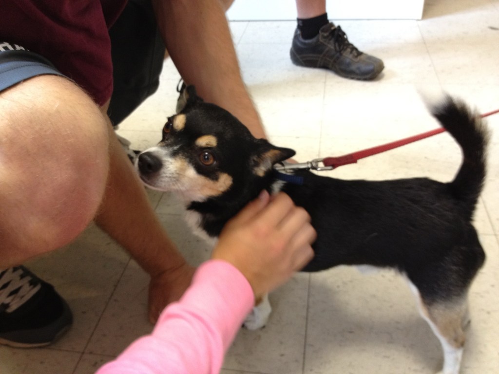One afternoon, July 27th to be exact, I took a trip to the Meriden Humane Society and said, “I want to look at small dogs”. A worker brought me outside to the dogs in their cages. I took pictures of 5 or 6 dogs all eager and excited to see me and show off how fetching they were. Except for one. A black and brown and white chihuahua / terrier mix. He just would not look me in the eye!