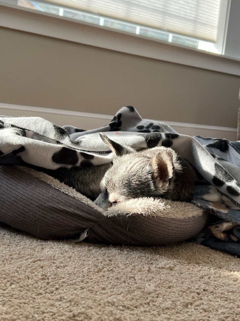 In his last few months, he slept more throughout the day but continued to eat heartily, poop and pee, and stand directly behind us when we were in the kitchen. He still had his 2 beds (one in the front living room, one in the family room), and he’d be in one at night and the other when we came downstairs in the morning.