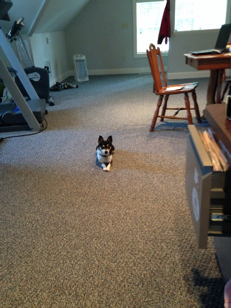 It was a great situation for us because our business’s office was the room over our garage. Wally would come to work with us and hang out in his bed, eating treats in abundance and having his play yard nearby. Of course, there was always time for play inside too!