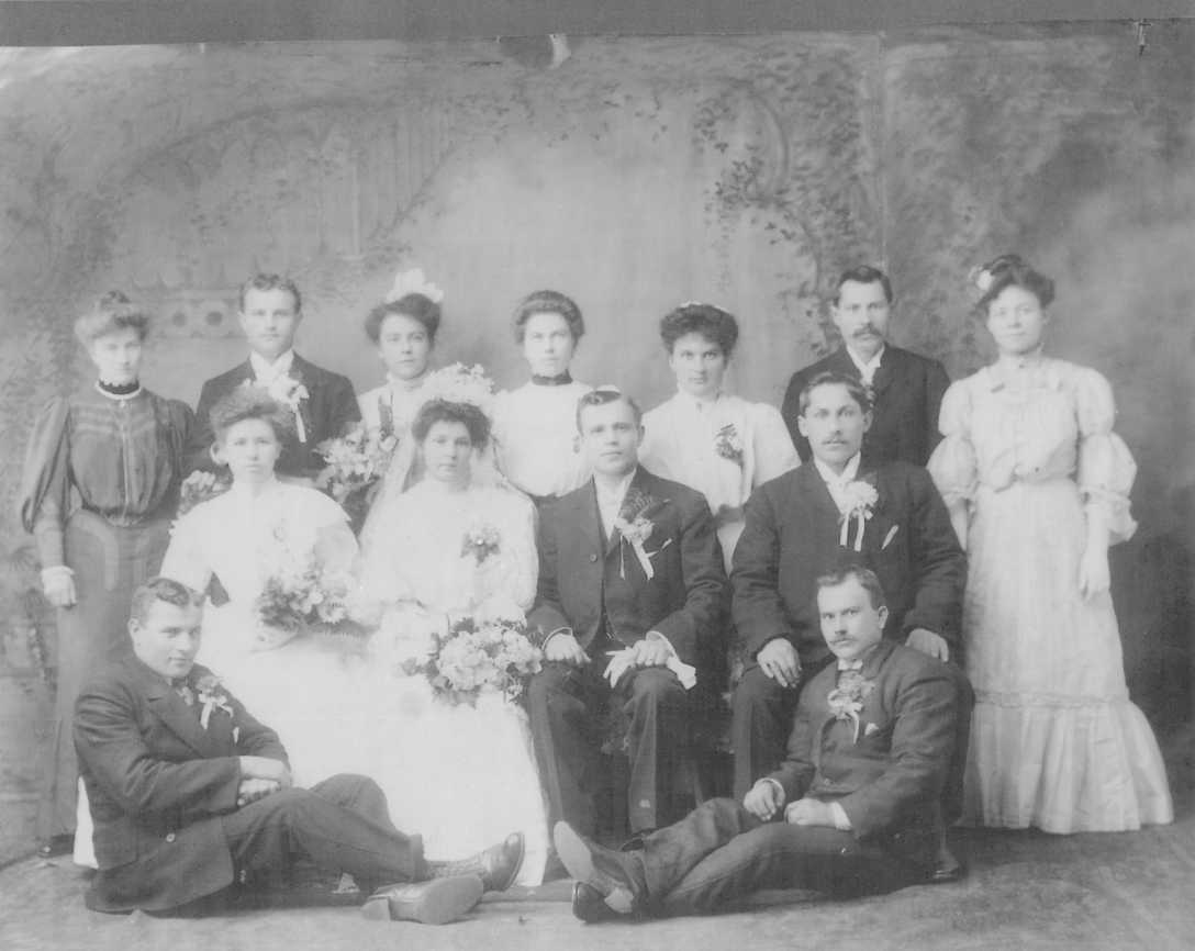 He met Maria Julia Straub some time after his arrival and married her on February 3, 1910, when he was 22 years old. My cousin says that Maria is in the first wedding photo, sitting behind him. That is the only photo I have of her.